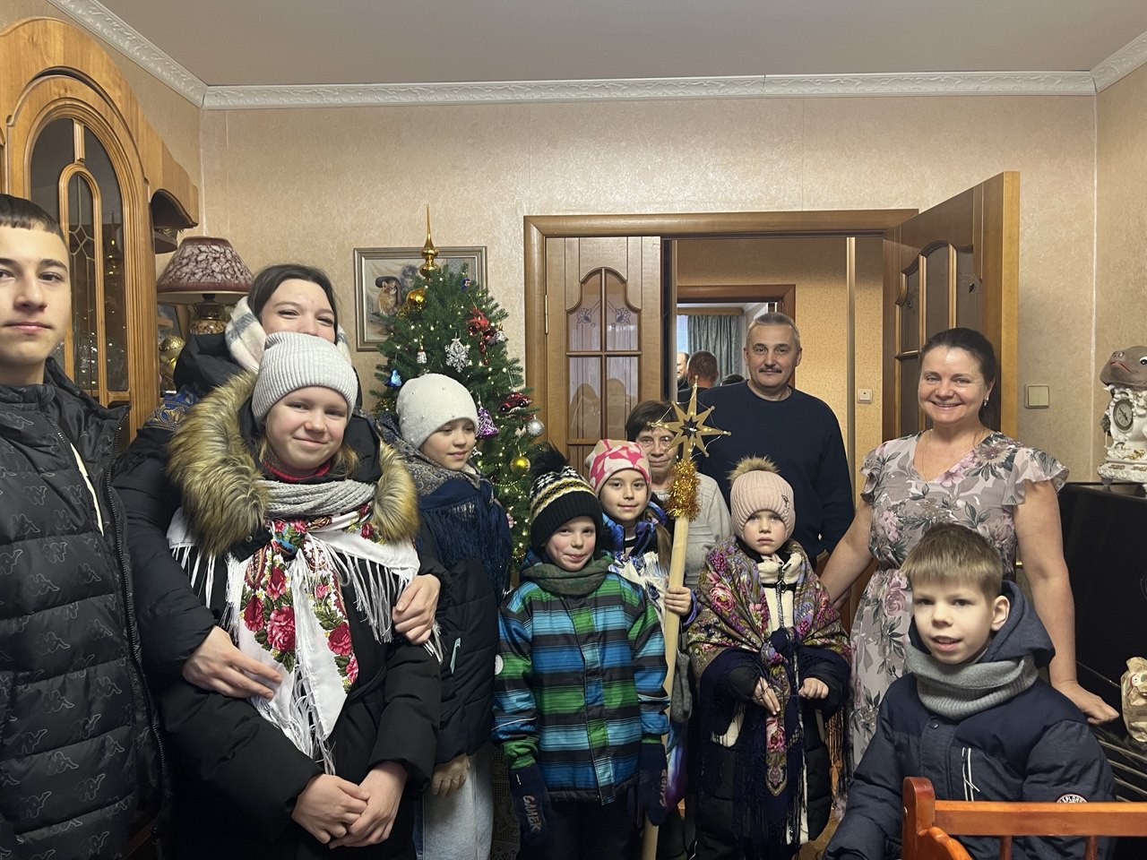 В день Рождества Христова наш приход провёл колядочное шествие. Отец Александр с колядующими поздравил прихожан, которым самим уже трудно добраться до храма. Также он поздравил детей из малоимущих и многодетных семей и вручил подарки от прихода.