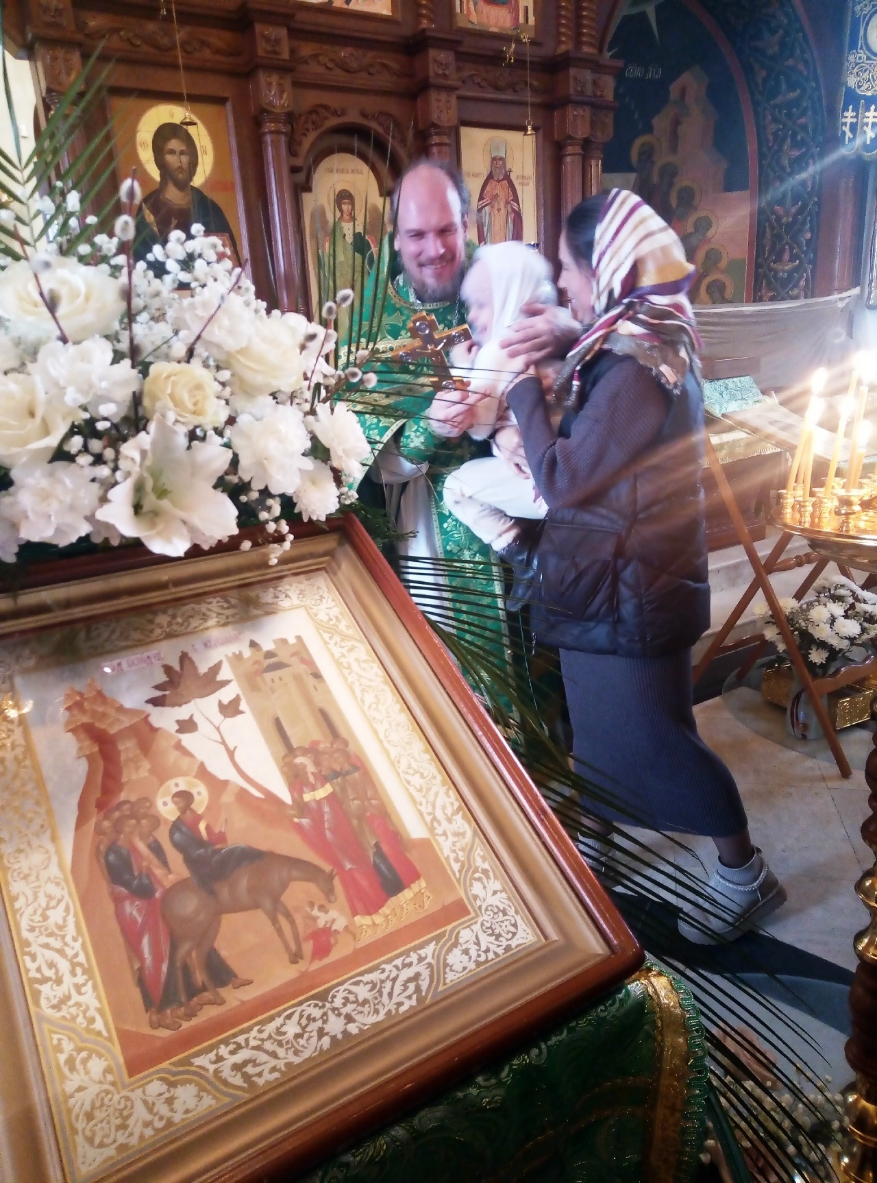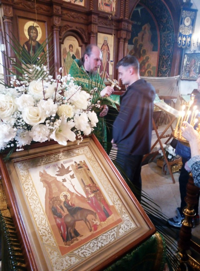 5 апреля в нашем храме отметили Вход Господень в Иерусалим. В этот праздничный день Спаситель впервые позволил называть себя царём и впервые принял подобающие почести. Торжественная встреча в земном Иерусалиме прообразовала грядущее воцарение в Иерусалиме Небесном. Но праздник стал прологом предстоящих страданий, ведь не случайно именно в этот день выбирали жертвенного агнца, которого предстояло заколоть на еврейскую пасху, наступающую через 6 дней. Страстная седмица открывается двунадесятым праздником ведь как нет любви без жертвенности — без страданий нет воскресения. Финальный путь на страсти начался для Христа с торжества, что подчёркивает как призрачна земная слава, и как обманчива на фоне подлинной славы небесной. Христос показал это, въехав в торжествующий Иерусалим на ослике, а не боевом скакуне, призывая этим вместо самолюбия к смирению, вместо доминирования к служению, вместо властности к любви. Евангелие от Матфея указывает, что помимо ослика, не знавшего ярма была ещё подъяремная ослица. Она прообразовала еврейский народ, у которого уже был Закон Моисеева. Но Спаситель едет именно на ослике, что указывает на грядущее обращение ко Христу новых народов, свободных от накопившихся в еврейском предрассудков и ханжества. Иудеи, неправильно понимавшие роль мессии так радостно встречали Спасителя, поскольку ждали от Него материальных благ и удовлетворения их национальной гордыни, ждали, что он поведёт их покорять мир. Но покорять надо только собственные страсти. Господь не в разрушающих царства катаклизмах, а в веянии тихого ветра, не в показном величии, а в духовной нищете, не в роскоши и удовольствиях, а в добровольных испытаниях. Венец царя Спаситель добровольно меняет на терновый, а слепое народное почитание на открывающие глаза крестные муки. Будем же встречать Христа не с расчётом, как когда-то иудеи, а с чистым сердцем, раскрываясь ему навстречу, как распускаются освященные веточки вербы!